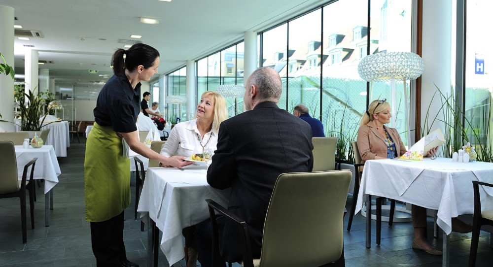 În bucătăria spitalului privat Döbling se pregătesc mâncăruri sănătoase potrivite pentru regimul alimentar al fiecărui caz în parte. Astfel, pacienții cu afecțiuni gastrice pot alege meniul ”Light”, cei care nu doresc carne se pot bucura de meniul ”Vegetarian”, iar meniul ”Vital” are la bază preparate reduse caloric. Persoanele fără restricții dietetice pot savura mese concepute cu delicatese mediteraneene sau preparate specifice bucătăriei clasice vieneze. De asemenea, respectând indicațiile medicilor, bucătarii noștri pot crea alte variante de preparate care să vă sprijine în procesul de vindecare.